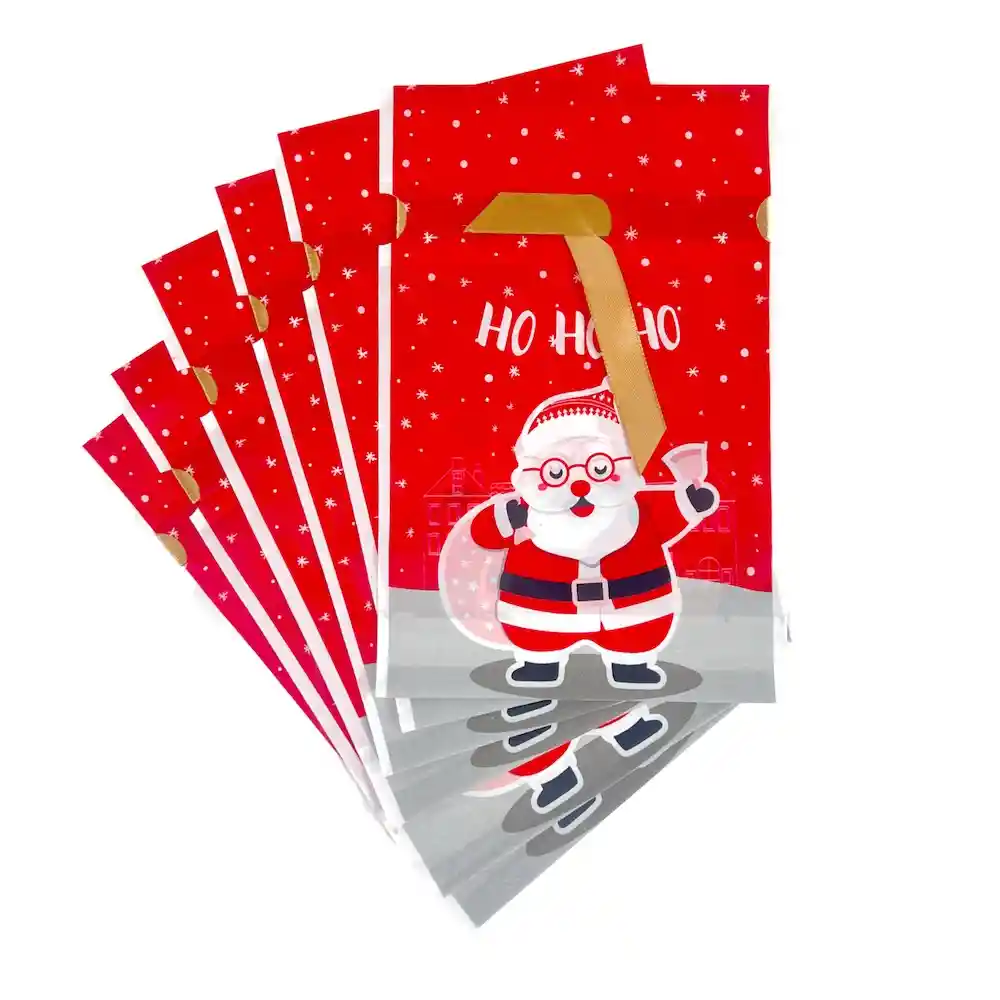 Bolsa plástica con cinta Navidad PAscuero. Contiene 6 unidades. Cada una mide 15x23,5 cm aproximadamente