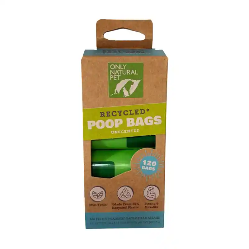 Especificaciones: Color: Verde Dimensiones de la Bolsa: 33 x 22.5 cm. Contenido: 1 caja con 8 rollos de 15 bolsas (120 en total). Las Bolsas Sanitarias Ecológicas para Heces de Mascotas de Only Natural Pet son la solución perfecta para los dueños de mascotas que buscan una opción responsable y sostenible. Con dimensiones de 33 cm de largo y 22,5 cm de ancho, estas bolsas son lo suficientemente resistentes para manejar las necesidades de tu compañero peludo, manteniendo la limpieza y el bienestar del entorno. Diseñadas pensando en el cuidado del planeta, estas bolsas están elaboradas con materiales biodegradables plástico reciclado sin perfume para perros están hechas de un 40% de plástico reciclado posconsumo. No son tóxicos, embalados en una caja de cartón de papel reciclado 100% post-consumo y núcleo para mayor sostenibilidad. Ideal para quienes valoran la responsabilidad ambiental y buscan calidad en productos para su mascota. Haz la elección correcta y transforma la rutina de tus paseos en una experiencia amigable con el medio ambiente.