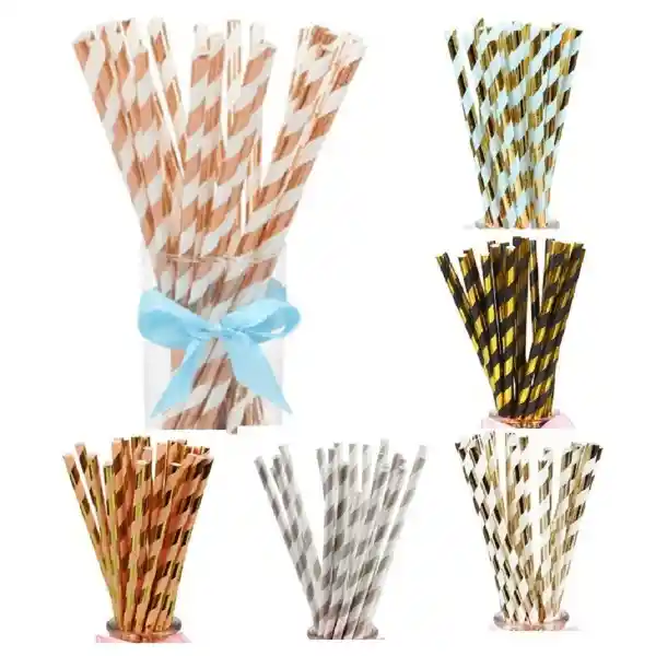 Bombilla de Papel Rayas Metalizada