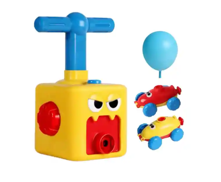 Este maravilloso juguete es entretenimiento asegurado, de fácil manipulación, los niños podrán ver como la fuerza del aire es capaz de impulsar los pequeños automóviles y cohetes. Es un juguete ideal para favorecer la integración junto a sus hijos y disfrutar en familia Incluye: 12 globos, 1 bombín lanzador, 2 autos, 1 cohetes, 1 astronauta 1, 2 codo para lanzar globos, 1 launch tower La nueva versión es más grande y más resistente (no se desprende el sello de aire como otros modelos)