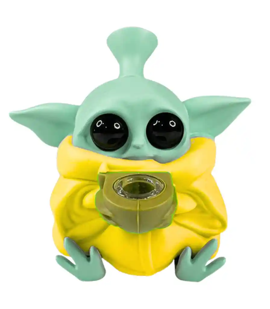El Bong de Silicona Baby Yoda en color amarillo combina funcionalidad y estilo para los entusiastas del fumado que también son fans de personajes icónicos. Este bong está diseñado con un cuerpo de silicona flexible y resistente a altas temperaturas, lo que lo hace prácticamente indestructible y fácil de limpiar. El tazón está hecho de pyrex, conocido por su resistencia al calor y durabilidad, garantizando un uso seguro y prolongado.