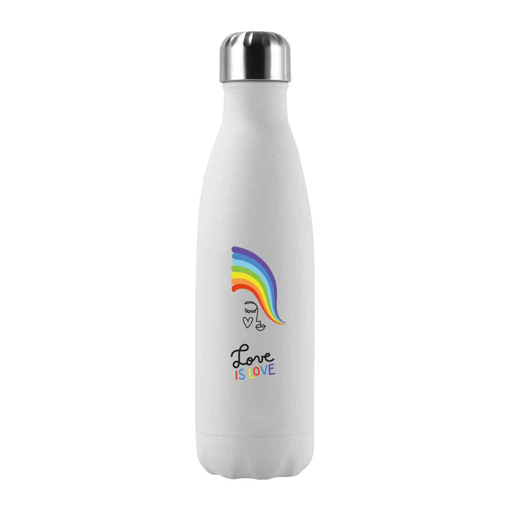 <p>Nuestra botella térmica blanca “Love is Love” de edición limitada llena de color es de 500 ml, Con tecnología de triple pared, es la elección perfecta para llevar tus bebidas a todas partes, manteniendo la temperatura ideal. Es 100% reutilizable y libre de BPA, que combina alegría y funcionalidad en cada sorbo.Con su compacta tapa rosca antigoteo podrás transportar tus bebidas de forma segura. Descripción: Botella térmica de doble pared de acero inoxidable 304 (grado alimento) que mantiene la temperatura de los líquidos hasta 24 horas fríos y 12 horas calientes. Libres de BPA.Dimensiones: 27 cm de alto x 7 cm de diámetro y 300 gr. de peso (aproximadamente).Lavar con agua tibia y lavaloza, secar destapada. Precaución: no sobre rellenar la botella con líquidos calientes, podría causar quemaduras al abrirla. No introducir al microondas, refrigerador y freezer. No sobre rellenar con líquidos carbonatados.</p>