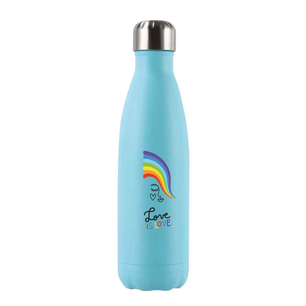 <p>Nuestra botella térmica de color celeste “Love is Love” de edición limitada llena de color es de 500 ml, Con tecnología de triple pared, es la elección perfecta para llevar tus bebidas a todas partes, manteniendo la temperatura ideal. Es 100% reutilizable y libre de BPA, que combina alegría y funcionalidad en cada sorboCon su compacta tapa rosca antigoteo podrás transportar tus bebidas de forma segura. Descripción: Botella térmica de doble pared de acero inoxidable 304 (grado alimento) que mantiene la temperatura de los líquidos hasta 24 horas fríos y 12 horas calientes. Libres de BPA.Dimensiones: 27 cm de alto x 7 cm de diámetro y 300 gr. de peso (aproximadamente).Lavar con agua tibia y lavaloza, secar destapada. Precaución: no sobre rellenar la botella con líquidos calientes, podría causar quemaduras al abrirla. No introducir al microondas, refrigerador y freezer. No sobre rellenar con líquidos carbonatados.</p>