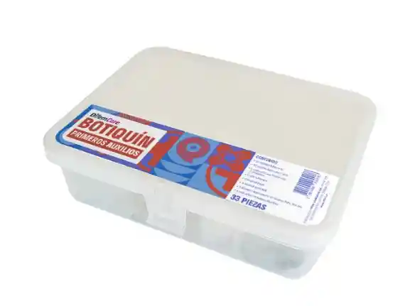Botiquín para primeros auxilios, disponible en un práctico envase, ideal para proteger su contenido.