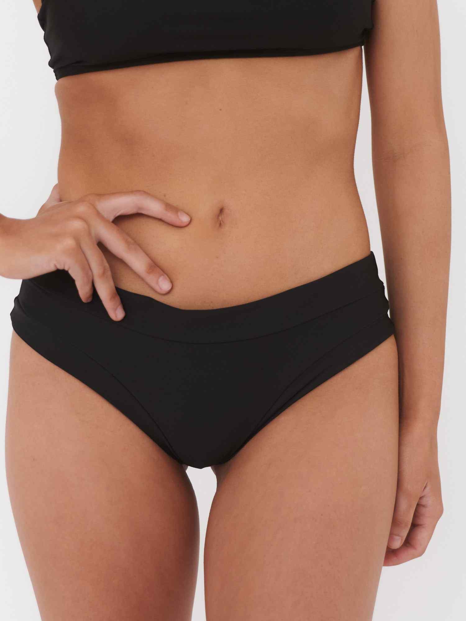 Tipo: Parte Inferior de Traje de Baño DaikiriDiseño: Liso Solido en NegroParte de Arriba: No AplicaParte de Abajo: Tipo Rebajada y No AjustableDestaca: Un calce perfecto gracias a su diseñoComposicion: Lycra® 90% Poliester Reciclado 10% SpandexTela: Hidrantante de Piel con Aloe Vera y Resistente al CloroProteccion Piel: Con Filtro Solar Certificado UV50+