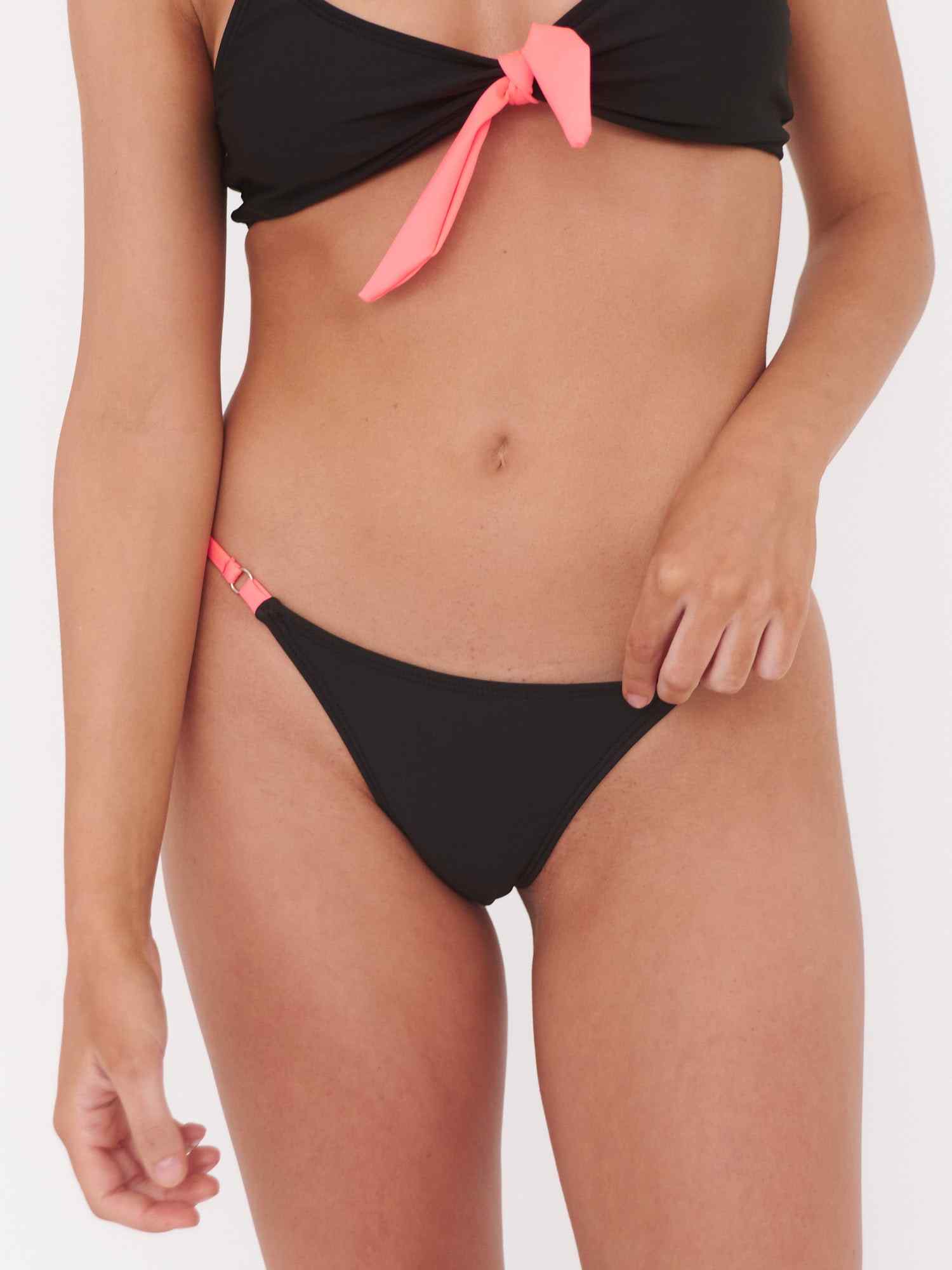 Tipo: Parte Inferior de Traje de Baño DaikiriDiseño: Liso Solido en NegroParte de Arriba: No AplicaParte de Abajo: Tipo Rebajada y RegulableDestaca: Gran Ajustabilidad para que te Quede Perfecto!Composicion: Lycra® 90% Poliester Reciclado 10% SpandexTela: Hidrantante de Piel con Aloe Vera y Resistente al CloroProteccion Piel: Con Filtro Solar Certificado UV50+