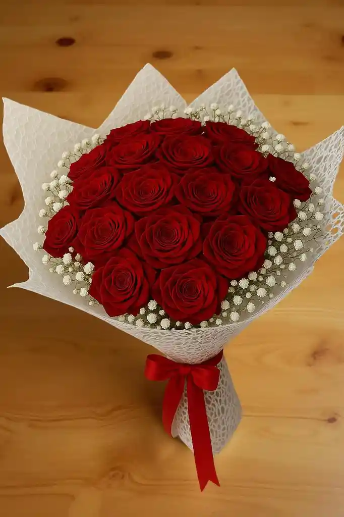 HERMOSO BOUQUET 25 ROSAS ROJAS PARA REGALAR EN CUALQUIER OCASIÓN