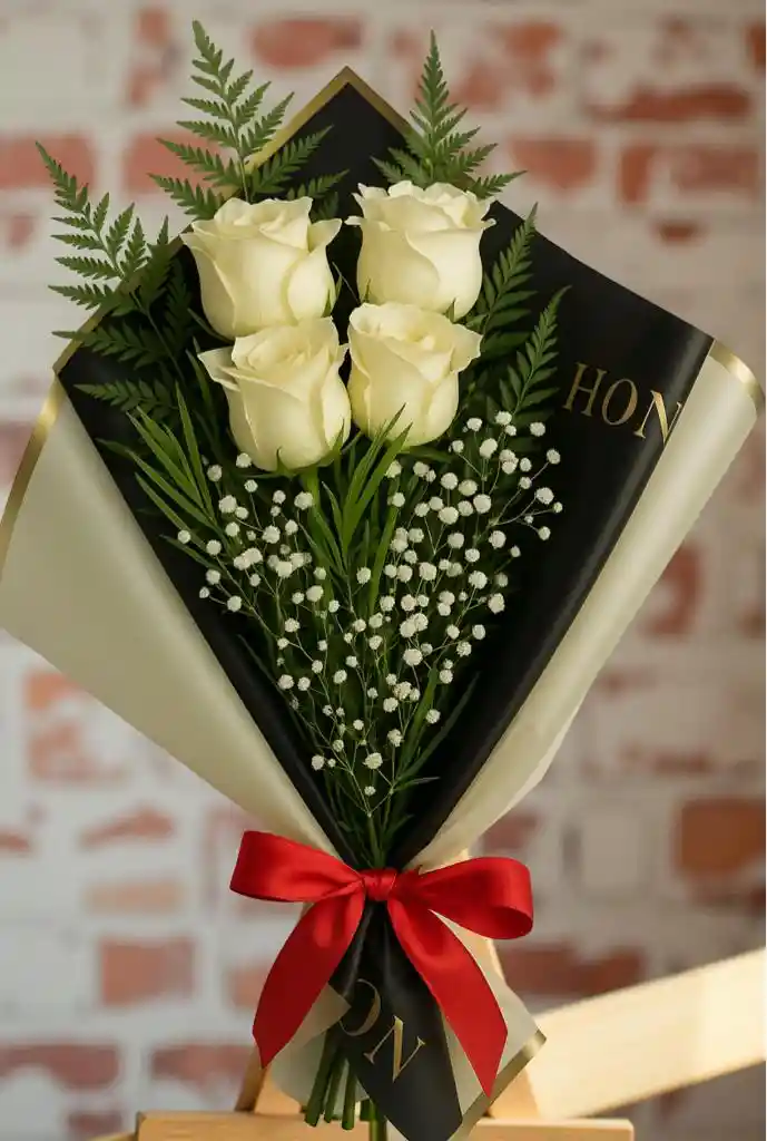 HERMOSO BOUQUET 4 ROSAS BLANCAS PARA REGALAR EN CUALQUIER OCASIÓN