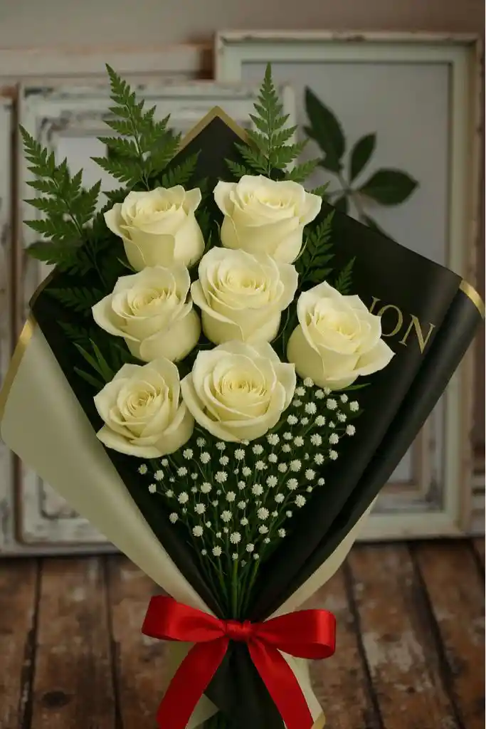 HERMOSO BOUQUET 7 ROSAS BLANCAS PARA REGALAR EN CUALQUIER OCASIÓN