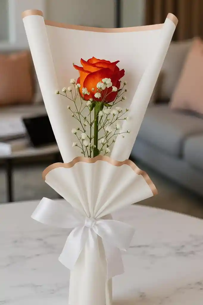 HERMOSO BOUQUET DE 1 ROSA NARANJA PARA REGALAR EN CUALQUIER OCASIÓN