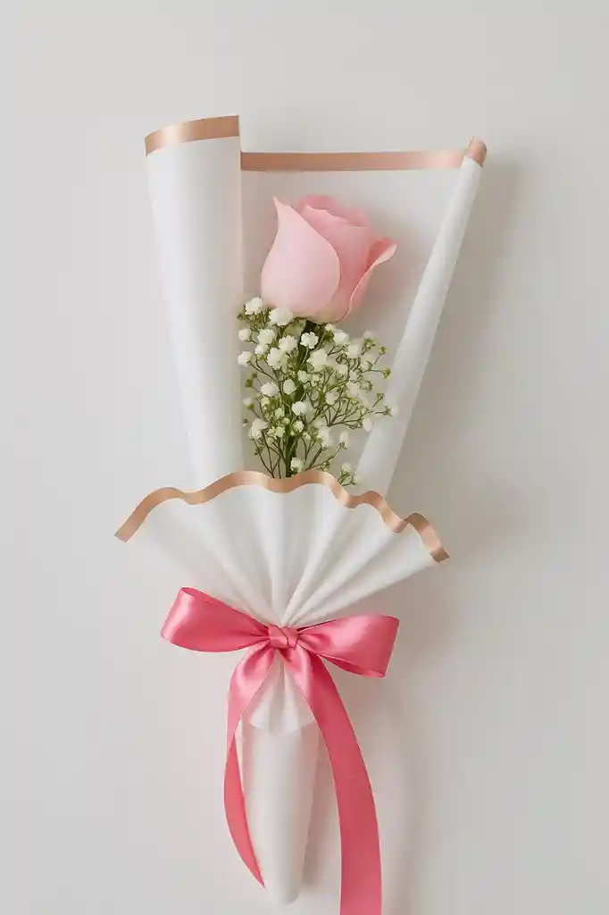 HERMOSO BOUQUET DE 1 ROSA ROSADA PARA REGALAR EN CUALQUIER OCASIÓN
