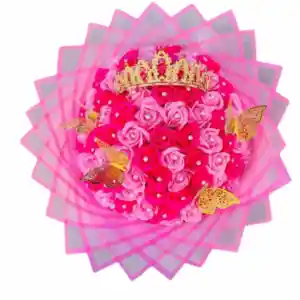 Bouquet de 100 Rosas Fucsias y Rosadas Eternas con Corona