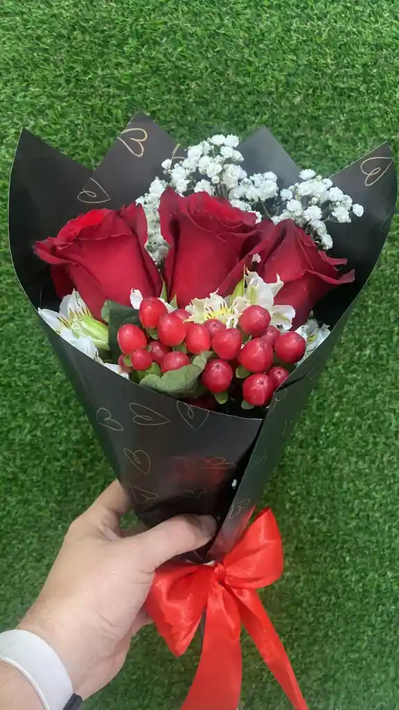 Bouquet de 3 rosas arregladas, listas para regalar a esa persona especial