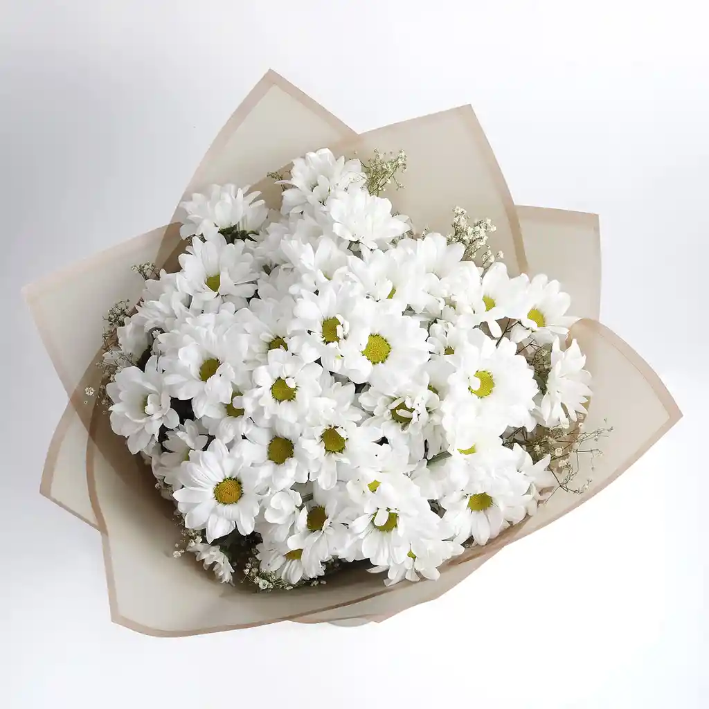 Bouquet de Margaritas con Gypso 🌼 ¡Pureza y ternura en cada pétalo! Encantador bouquet de margaritas blancas frescas complementadas con delicado gypso (velo de novia), creando una combinación perfecta de simplicidad y elegancia natural. Características: Margaritas blancas frescas abundantes Gypso decorativo (velo de novia) Envuelto en papel delicado de colores suaves Cinta decorativa a juego Presentación clásica y romántica Perfecto para: Declaraciones de amor puro Bodas y compromisos Regalos de disculpa sincera Decoración minimalista Expresar sentimientos tiernos Ocasiones especiales íntimas Entrega el mismo día en Santiago Flores seleccionadas por su frescura y simbolismo especial. Las margaritas representan inocencia, amor puro y nuevos comienzos. El gypso simboliza pureza eterna. ¡Una combinación que habla desde el corazón! 🤍 Elegancia minimalista 🌸 Fragancia suave y natural 🚚 Empaque cuidadoso garantizado 🌿 Frescura de larga duración