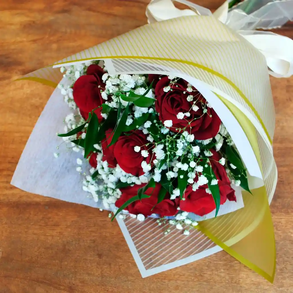 Hermoso bouquet de 6 rosas acompañadas de un delicado follaje, envueltas en papel celofán y cinta. Las rosas son una de las flores más populares y utilizadas a la hora de expresar los sentimientos mediante un ramo o arreglo floral. Como las rosas tienen diferentes colores, este define su personalidad y cada uno se relaciona con la intención de quien ofrece la flor. Di lo que sientes y conquista con este ramo de rosas en el color que escojas