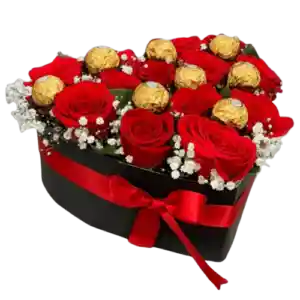 Box Corazón 10 Rosas y 8 Bombones Ferrero