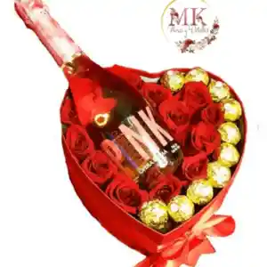 Box Corazón 12 Rosas, 10 Bombones y Espumante Pink