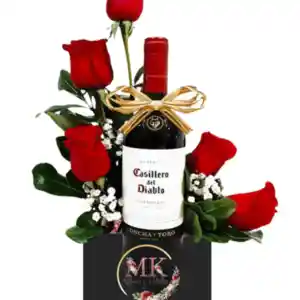Box Cuadrado de 5 Rosas y Vino 750cc
