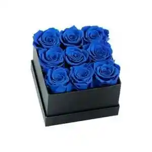 Box Cuadrado de 9 Rosas Azules Eternas de Jabón