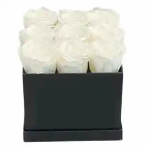 Box Cuadrado de 9 Rosas Blancas Eternas de Jabón