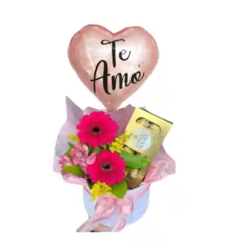 BOX DE 2 GERBERAS + FERREROS ROCHER 100G Y GLOBO GRANDE
