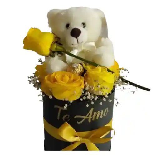 BOX DE 3 ROSAS, 2 BOMBONES Y PELUCHE DE 20CM