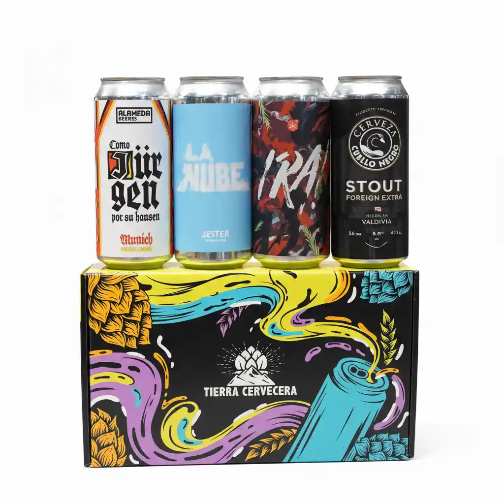 Box de Regalo Clásico Mix 4 cervezas + caja de regalo 🎁 ‼️Incluye hermosa caja de regalo‼️ 🎁 ¡El regalo perfecto para los amantes de la cerveza! 🍻 Este año, sorprende a tu amigo cervecero con un box de regalo que eleva la celebración a otro nivel. Si sabes que le gusta disfrutar de una buena cerveza, ¡no hay nada mejor que regalarle una experiencia cervecera única! Nuestro box de clásicas incluye cuatro latas de cervezas artesanales y nacionales, cuidadosamente seleccionadas para ofrecer una variedad de sabores que van desde lo suave y refrescante hasta lo intenso y robusto. Cada cerveza es una pequeña obra maestra creada por cerveceros locales, que podrás disfrutar en cada sorbo, acompañada de la magia y el espíritu cervecero. ¿Qué cervezas contiene este box? ⚪️La primera de esta selección es una clásica Munich Helles Lager, Como Jurguen por su hausen, de hermosa apariencia cristalina e impecable espuma, es definitivamente la más refrescante de este box. ☁️Siguiendo con la frescura propia de las Hazy, Nu-B de Jester es una Hazy Pale Ale que destaca por su cuerpo turbio y carácter tropical, ideal para los amantes del lúpulo. 🔴En tercer lugar y no por eso menos importante, tenemos en este box a la exótica Ira!, India Red Ale de Granizo riquísima en sabor y notas distintivas, lo que la hace una cerveza imperdible para todo conocedor del mundo artesanal. ⚫️Finalmente coronamos con una campeona global, directamente de Valdivia traemos a este box a la más maltosa de todas, Cuello Negro Stout, es una cerveza negra con cuerpo robusto y exquisitas notas a café. ¡Si por algún motivo desconocido e improbable está selección no te convence tenemos decenas de box, te invitamos a seguir buscando entre nuestra vasta variedad!