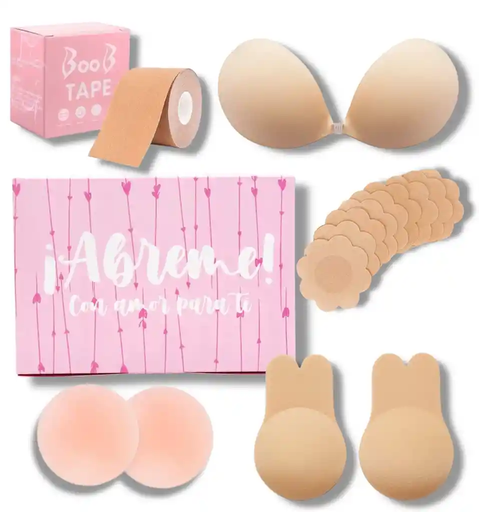 Box Especial Intimo De Navidad. Todo lo que necesitas para completar tu Outfit este mes especial. El Box Incluye: - Boob Tape : Cinta de levantamiento en color Beige. Rollo de cinco metros (5m). - Bunny Bra : Brasier en forma de conejito reutilizable con levantamiento Beige. Un Par. - Set De Cubre Pezón: Set de cubre pezón en forma de flor . Diez Unidades. - Cubre Pezón : Reutilizable en forma redonda. Un Par. - Brassier Soft Bra : Reutilizable en color Beige. Unidad. Este Box te incluye una caja de Obsequio donde irán todos tus productos , ideal para ti , para regalar o compartir. Disponible Hasta Agotar Stock.