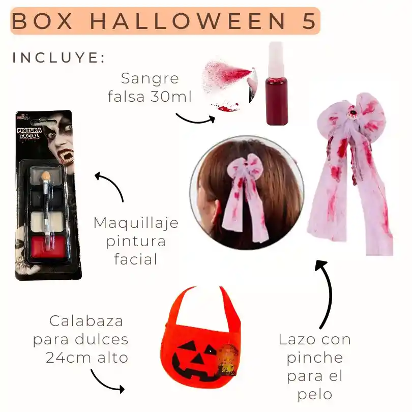 Disfraz incluye pinche para el pelo, pintura, sangre artificial y bolsa pequeña para dulces. Disfraz halloween