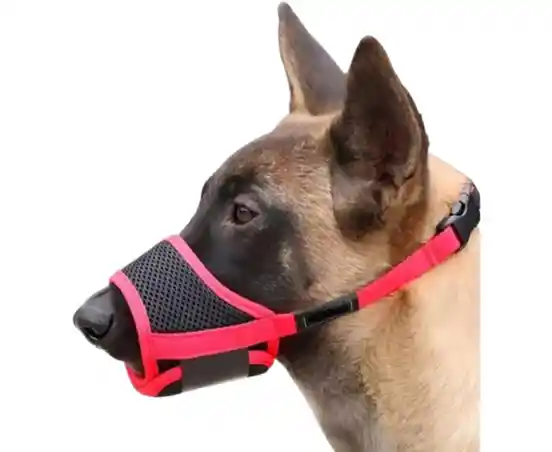 -Ajustable y seguro, el bozal para perro es ajustable, y la correa de nailon para el cuello es fácil de instalar. Una hebilla de plástico en la correa del cuello evita que el bozal se caiga -Cómodo y transpirable: el bozal utiliza material de malla transpirable que hace que los perros se sientan más cómodos. -Utilizar el bozal puede evitar eficazmente que los perros muerdan, coman alimentos sucios y dañen a otros. Atención: la mayoría de los perros no se adaptan a usar bozal al principio, por lo que tenemos que tomarnos tiempo para que se adapten pacientemente. Tamaño: Talla XL 22- 28 cms. Color: Negro-Rojo