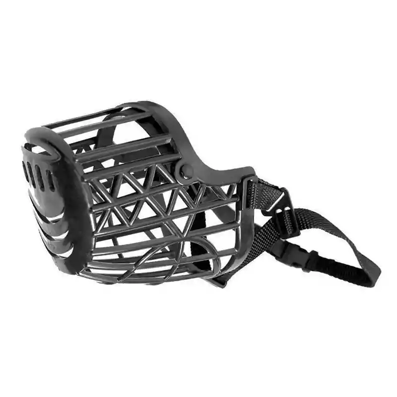 . Bozal tipo Canasta para perritos medianos. . Ajustable , ideal para educar en positivo , permite respirar adecuadamente sin lastimar la trufa, tomar agua , jadear y recibir premios pero sin el peligro de morder en caso de tener conductas agresivas . . Recomendamos de forma obligatoria asesorarte por un profesional para educar en el uso de bozal de forma positiva, libre de miedo y estrés para tu animalito . Nota: Para saber el tamaño exacto solo debe tomar las 4 medidas de la 4ta. imagen y comparar con la tabla de la 3ta. imagen Especificaciones: . Material: Las partes externas es en plástico y las correas de nailon. Color: Negro. Talla Disponible: 2 Dimensiones: (En imagen numero 2) Contenido: 1 Bozal tipo canasta