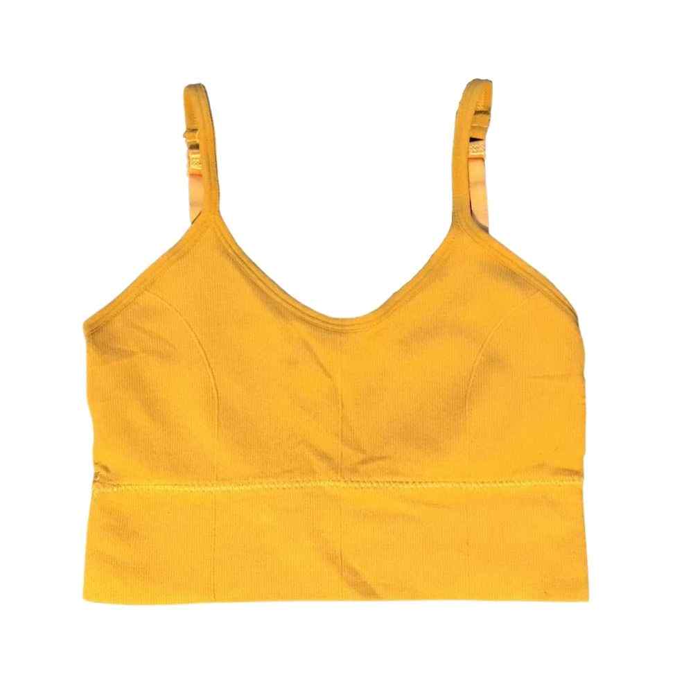 Queremos ayudarte a resaltar tu belleza natural. ¡Siéntete cómoda, femenina y sexy con este precioso Bralette Olimpia con espalda rebajada, color mostaza.Este lindo bralette se adhiere a la forma de cada cuerpo con un calce cómodo y suave. Tiene esponjas removibles, sin barba y con espalda rebajada. Sus tirantes tienen la medida perfecta, para verse bien con cualquier tenida, pero al mismo tiempo son firmes y además ajustables. Talla única recomendado para copas 32A, 32B, 32C, 34A, 34B, 34C, 36A y 36B o para tallas XS, S, M y L. La modelo rubia es talla XS/S y la modelo morena de la última foto es talla M.Material: Nylon/Spandex.