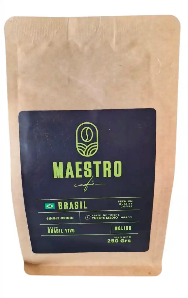 BRASIL VIVO Puntaje SCA: 86 Perfil de tueste: Medio Notas de cata: Ganache, chocolate negro, jazmín, jabuticaba. Acidez media, alto dulzor. Aftertaste suave y largo, cuerpo sedoso. Altura: Indefinida