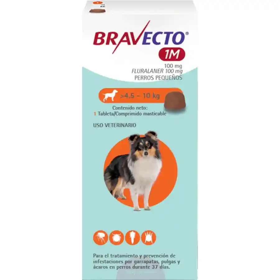 Comprimido masticable para el control de pulgas, garrapatas, sarna demodécica, sarcóptica y otodéctica en perros.