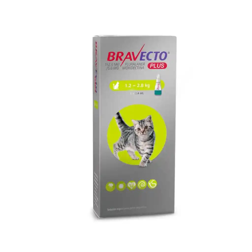 Indicaciones Para administración en gatos con o en riesgo de sufrir infestaciones parasitarias mixtas por pulgas y garrapatas, nematodos gastrontestinales (larvas de 4ta etapa, adultos inmaduros y adultos de Toxocara cati y Ancylostoma tubaeforme) o gusanos del corazón. Este medicamento de uso veterinario se prescribe exclusivamente cuando su uso contra pulgas o garrapatas y uno o más de los otros parásitos objetivo está indicado al mismo tiempo. Para el tratamiento de infestaciones de pulgas y garrapatas en gatos, proporcionando una actividad persistente e inmediata que mata a las pulgas (Ctenocephalides felis) y garrapatas (Ixodes ricinus, Ixodes scapularis, Rhipicephalus sanguineus, Haemaphysalis longicornis) por 12 semanas. Las pulgas y garrapatas deben estar adheridas al huésped y comenzar a alimentarse para quedar expuestas a la sustancia activa. Para el tratamiento de infestaciones de Otodectes cynotis. Para la prevención de la enfermedad del gusano del corazón causada por la Dirofilaria immitis durante 12 semanas. El producto se puede usar como parte de una estrategia para el tratamiento de la dermatitis alérgica causada por picadura de pulga (DAPP). FORMA FARMACÉUTICA: Solución Tópica. DOSIS Y VÍA DE ADMINISTRACIÓN: Para administración tópica. La siguiente tabla define el tamaño de la pipeta que se debe usar de acuerdo con el peso corporal del gato, correspondiente a una dosis de 40-94 mg de fluralaner/kg de peso y de 2- 4.7 mg de moxidectina/ kg de peso: CONSEJOS PARA LA ADMINISTRACIÓN CORRECTA: Vía de administración: Paso 1: Inmediatamente antes de usarlo, abra el empaque y saque la pipeta. Para abrir la pipeta ésta deberá sujetarse por la base o por la parte superior rígida debajo de la tapa en posición vertical (con la punta hacia arriba). La tapa deberá girarse en el sentido de las manecillas del reloj o en sentido contrario una vuelta completa. La tapa quedará sujeta a la pipeta, pues no es posible desprenderla. La pipeta estará abierta y lista para usarse cuando sienta que el sello se ha roto. Paso 2: El gato deberá estar de pie o echado con la espalda en posición horizontal para una fácil aplicación. Coloque la punta de la pipeta en la base del cráneo del gato. Paso 3: Apriete suavemente la pipeta y aplique todo el contenido directamente en la piel del gato. El producto se deberá aplicar a gatos de hasta 6.25 kg de peso en un solo punto en la base del cráneo y en dos puntos en la base del cráneo en gatos que tengan un peso corporal de más de 6.25 kg.
