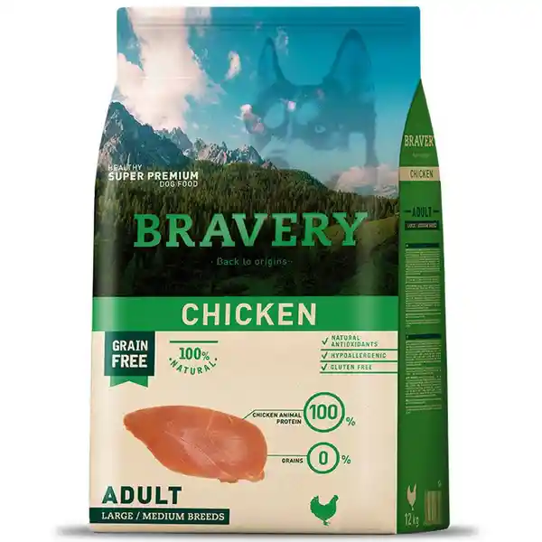 Bravery Alimento Para Perro Chicken Adult Large/Medium