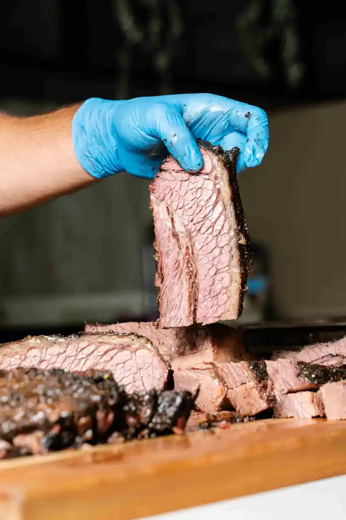 Tapapecho de Vacuno Angus Ahumado Déjate conquistar por el sabor profundo y auténtico de nuestro brisket ahumado lentamente durante 12 horas en una mezcla selecta de maderas nobles, roble y cerezo. Adobado con sal, pimienta y mix de especias."