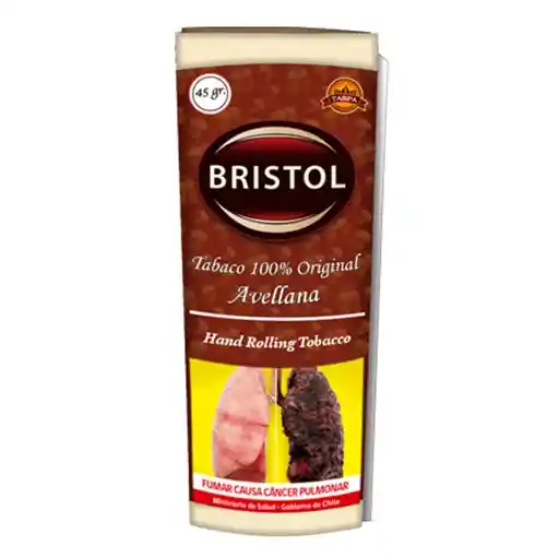 Bristol Avellana 45 grs. Tabaco de origen brasilero Empaque metálico con cierre tipo ziploc