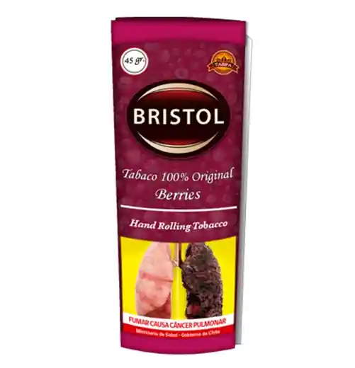 Bristol Berris 45 grs. Tabaco de origen brasilero Empaque metálico con cierre tipo ziploc