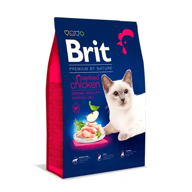 Brit Premium by Nature Cat Sterilized Chicken es un alimento completo indicado para gatos adultos esterilizados. Perfectamente equilibrado y de fácil digestión gracias a su fórmula ideal. Alimento tentador y sabroso elaborado con ingredientes naturales para la alimentación saludable diaria de todos los gatos. Con salsa de hígado de pollo y pulpa de manzana – una fuente natural de fibra. Con romero, clavo, cúrcuma y cítricos – antioxidantes naturales. Con prebióticos. LIBRE de trigo, maíz y soja.