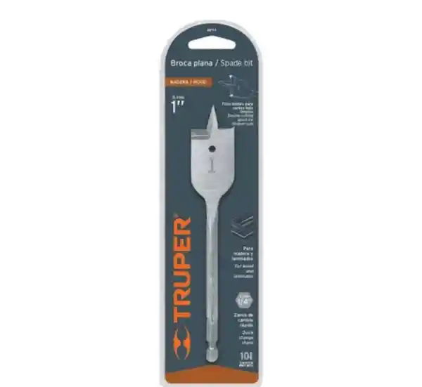 (Paleta) Para Madera de 1 (254 mm). Fabricada en Acero al Alto Carbono Con Zanco Hexagonal Anti-Derrapante. Posee Punta Centradora Para Mayor Precisión y Espolones Laterales Para un Acabado Limpio en la Perforación.