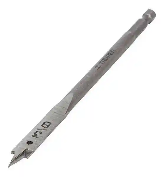 (Paleta) Para Madera de 3/8 (95 mm). Fabricada en Acero al Alto Carbono Con Zanco Hexagonal Anti-Derrapante. Posee Punta Centradora Para Mayor Precisión y Espolones Laterales Para un Acabado Limpio en la Perforación.