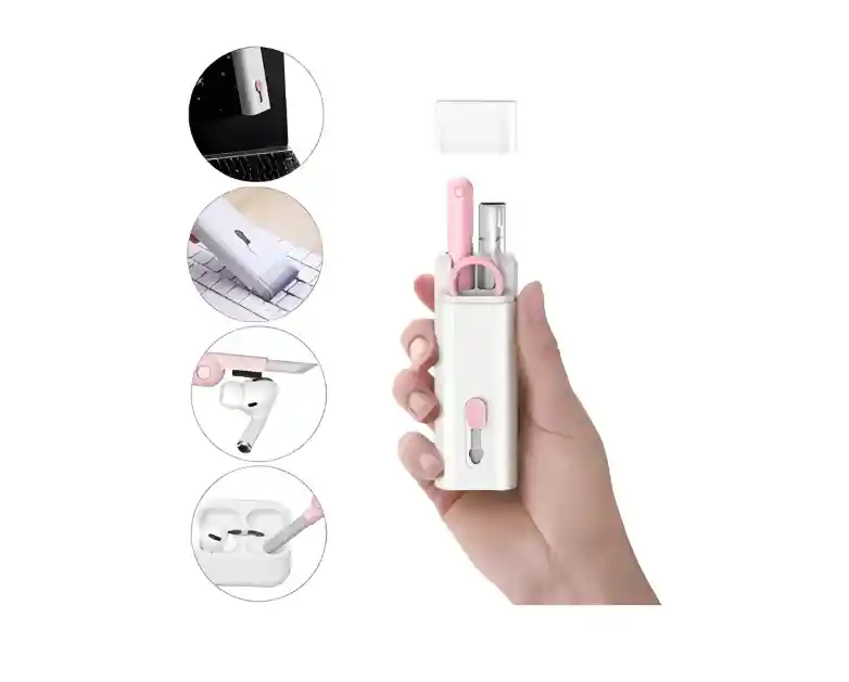 Este kit de limpieza 7 en 1 incluye 1 cepillo grande de alta densidad, 1 forro polar de fibra, 1 bolígrafo limpiador para auriculares (incluye punta de gel de sílice, esponja en escamas y minicepillo de alta densidad), 1 extractor de llaves y 1 botella de aerosol. Este limpiador multifuncional puede satisfacer todas tus necesidades de limpieza de aparatos electrónicos en casa. Limpieza de auriculares/teléfonos Bluetooth Lápiz limpiador plegable con punta de silicona, cepillo pequeño de alta densidad y esponja flocada, perfecto para limpiar los Airpod Pro 1, 2 y otros auriculares, auriculares y fundas de carga de teléfonos. La punta de silicona sirve para limpiar las manchas de grietas. El cepillo pequeño de alta densidad es ideal para limpiar el polvo de la superficie de la malla. La esponja flocada sirve para limpiar el orificio del estuche de carga. Limpieza de ordenadores portátiles, ordenadores, tabletas y teclados: Desliza el cepillo grande y suave de alta densidad para limpiar el polvo del ordenador, portátil, tableta y teclado. También puedes usar el extractor de teclas para tirar de las teclas del teclado mecánico y realizar una limpieza profunda. Limpieza del monitor, la pantalla, la cámara, el reloj y el televisor: Si viene equipado con una botella de aerosol vacía de 5 ml, se vierte líquido limpiador o agua en la botella y se utiliza el forro polar de fibra para limpiar varias pantallas. Por ejemplo, monitores, televisores, monitores, relojes, cámaras, etc. Tamaño compacto y ligero: Especificación: - Material: ABS - Color: como se muestra - Ámbito de aplicación: tapones para los oídos, auriculares, teléfonos móviles, ordenadores, tabletas, cámaras y otros productos digitales compatibles con Bluetooth.