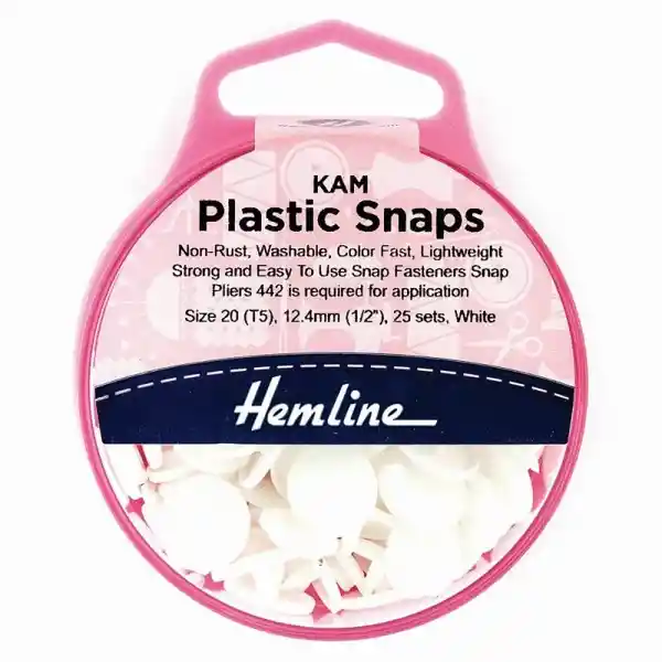No se oxida, lavable, ligero. Resistente y fácil de usar Se requiere alicate para su aplicación. Puedes usar "Alicate broche a presión Hemline" Número 20 (T5), 12.4 mm, 25 unidades