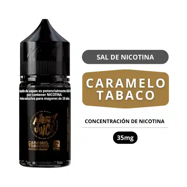 Sumérgete en una experiencia rica y cálida con nuestro Nasty Salt Bronze Blend. Una mezcla de tabaco tostado con el toque irresistible del caramelo dorado, que aporta dulzura y profundidad en cada calada. Perfecto para quienes buscan un sabor robusto y suave, con un toque dulce y cremoso que se queda en el paladar. Características - Tamaño: 30ml. - Composición: 50/50. - Tipo de Nicotina: Sal de nicotina. - Concentración de Nicotina: 35mg. *Su alta dosis de nicotina es perfecta para equipos POD y vapeo boca pulmón. *Las Sales de nicotina nunca deben ser usadas en tanques sub-ohm, RTAs o Rdas.