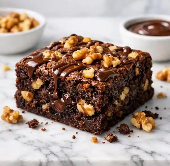 Delicioso brownie de chocolate con trozos de nuez que aportan un toque crujiente y un sabor profundo. Una combinación perfecta para los amantes del chocolate con textura.