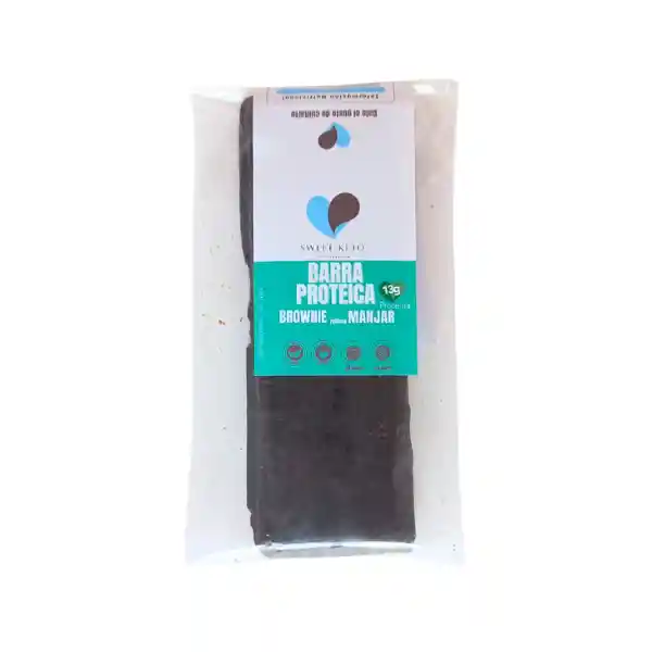 Brownie keto proteico de chocolate Belga relleno de manjar y cubierto de chocolate. Keto, proteico, sin gluten y sin azúcar.