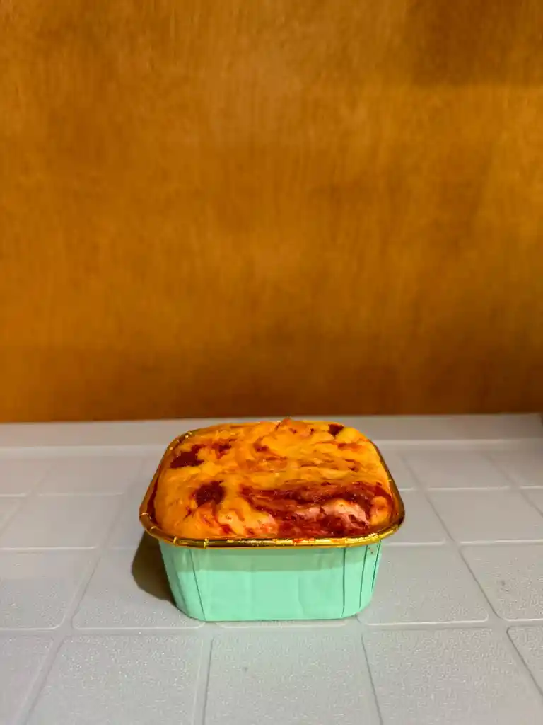 brownie red velvet de harina de almendra sin piel y cacao 100% endulzado con alulosa, sin gluten. con una cubierta que se mezcla de suave cheescake. en un envase lindo y practico,