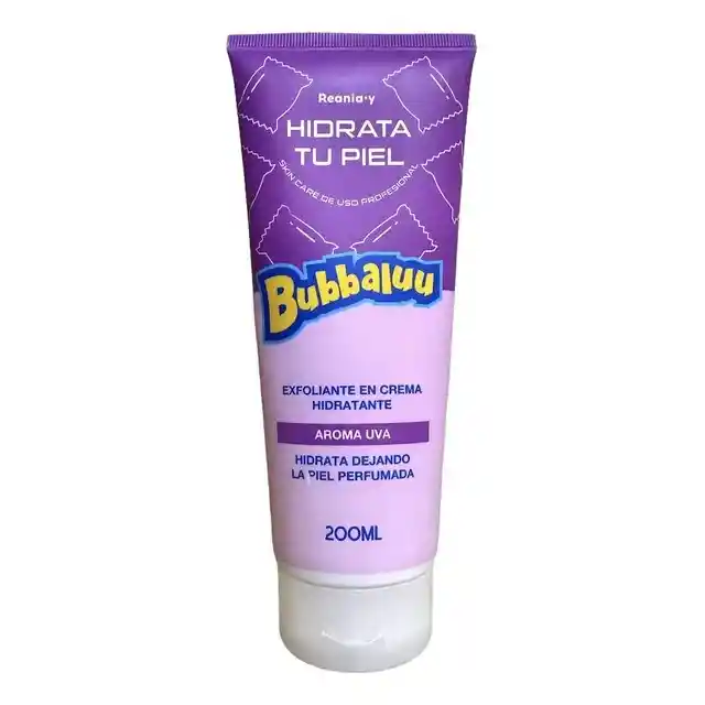 Exfoliante corporal en crema Bubaluu con aroma uva que ayuda a remover células muertas e impurezas mientras hidrata y suaviza la piel, dejándola con una textura lisa y un agradable aroma frutal. Su fórmula cremosa permite una exfoliación delicada, ideal para el cuidado y renovación de la piel. Uso externo.