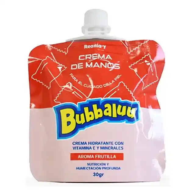Crema de manos hidratante con vitamina E y minerales que ayuda a nutrir, suavizar y proteger la piel, dejándola más hidratada y con agradable aroma a frutilla. Ideal para el cuidado diario y mantener las manos suaves. Contenido 30 g. Producto original marca Bubbaluu. Uso externo.